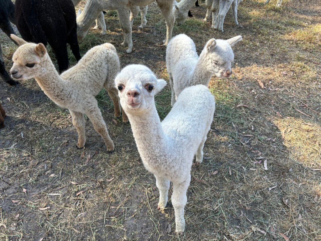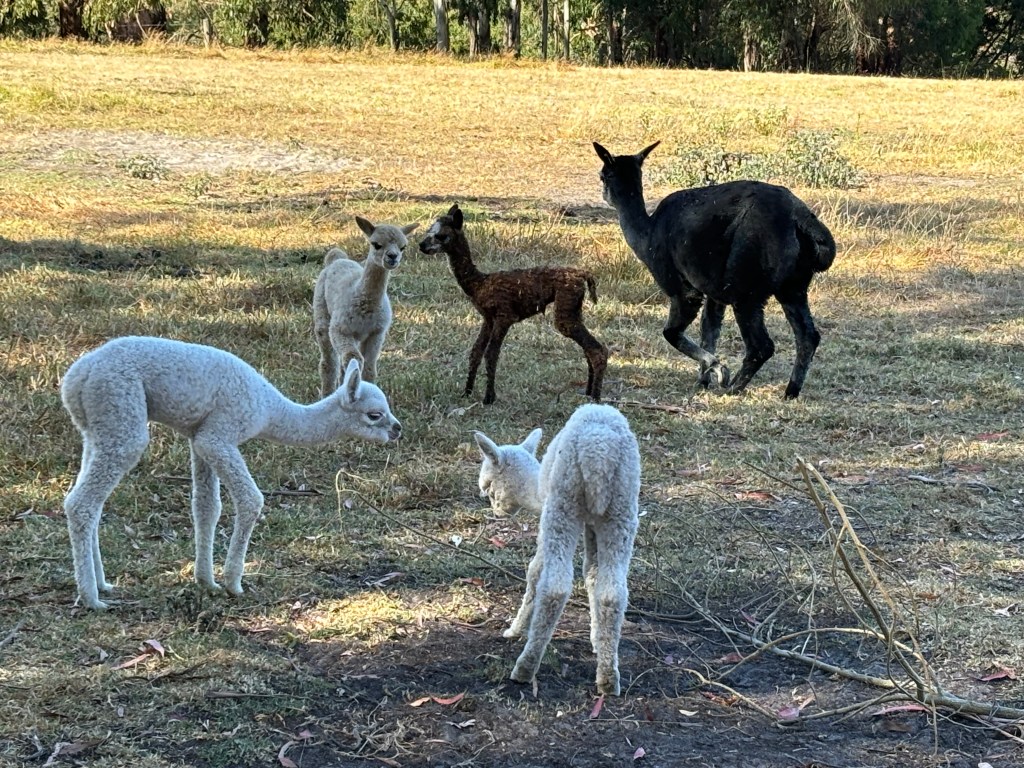 In March this year (2024) our 12 pregnant females all gave birth to healthy cria. Apart from helping some of them enter the world they were all born relatively easily and our girls are all great mothers. It’s such a delight to see them running around the paddock now that they’re a few months old and thriving.