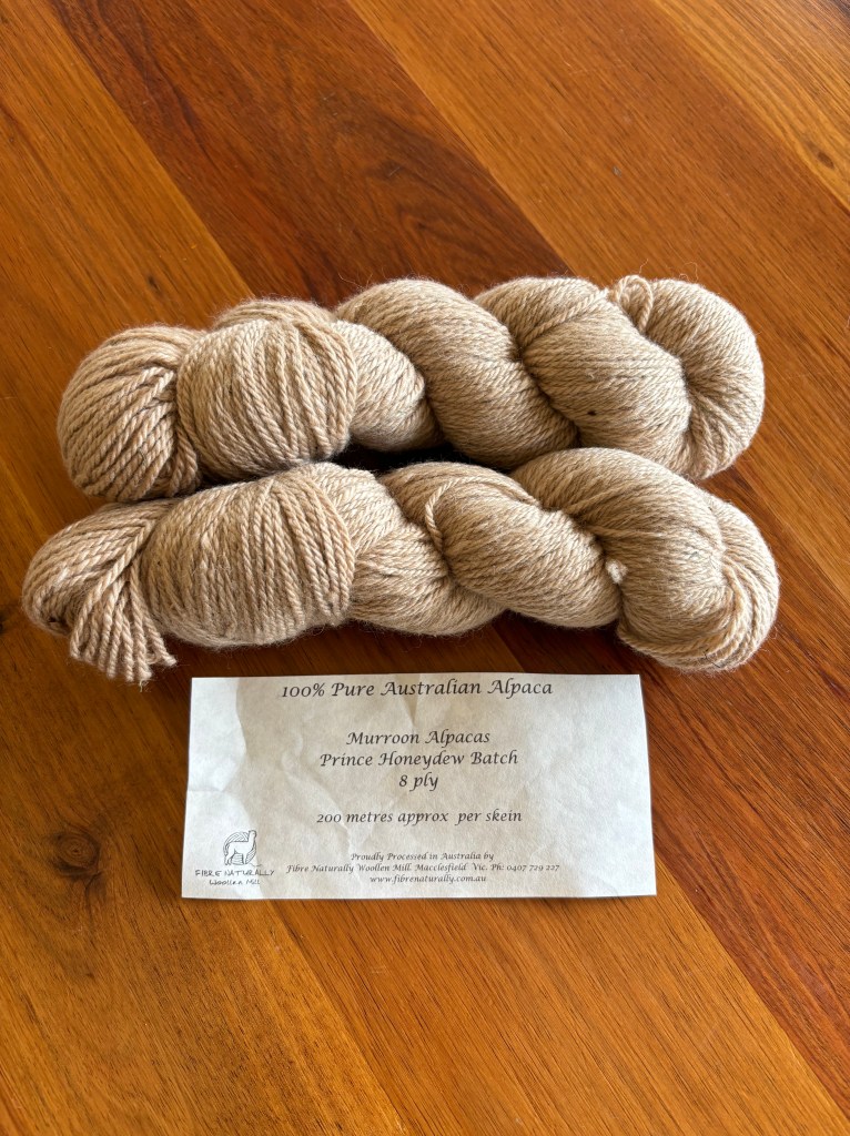 Pure alpaca yarn in a variety of colours. $40 per 100gm skein.